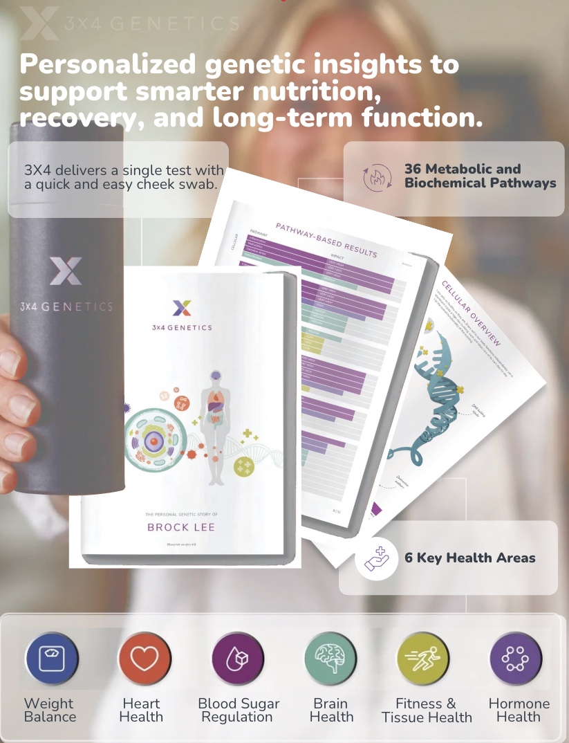 A comprehensive visit including physical assessment, health and lifestyle history, appropriate exercise testing, and ordering your 3X4 testing kit. - Review of Findings
